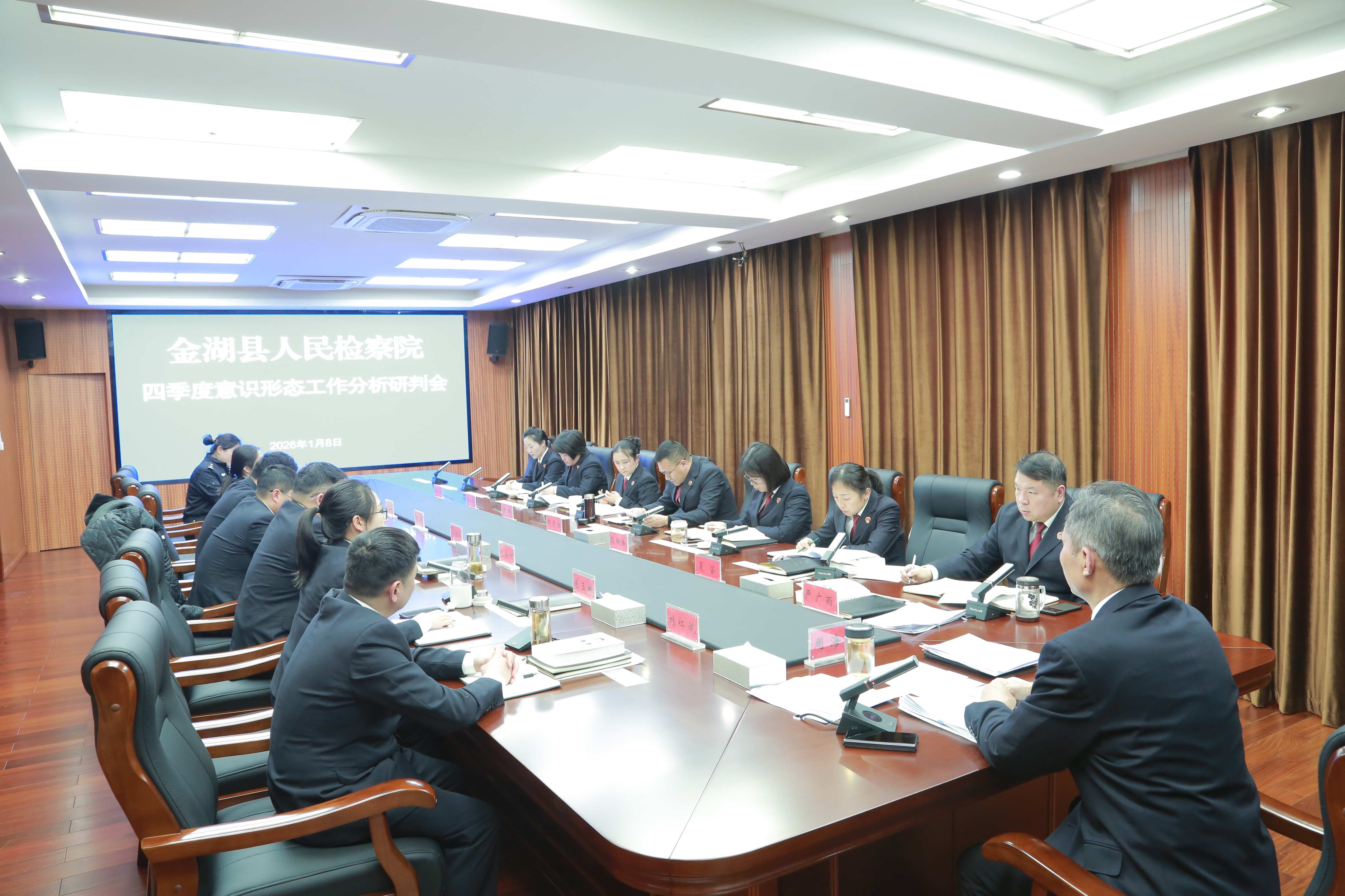 1月8日下午,金湖县院党组书记、检察长周海波主持召开四季度意识形态工作分析研判会,班子成员和部门负责人参加会议。各部门负责人汇报了四季度意识形态工作情况。