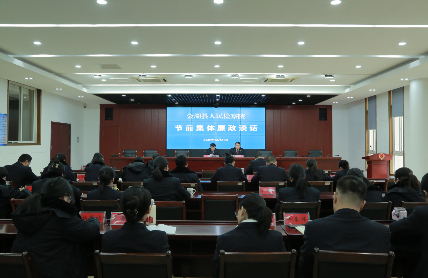 12月31日下午,金湖县院召开元旦节前集体廉政谈话,党组成员、政治部主任严广雨主持会议,院全体人员参加会议。